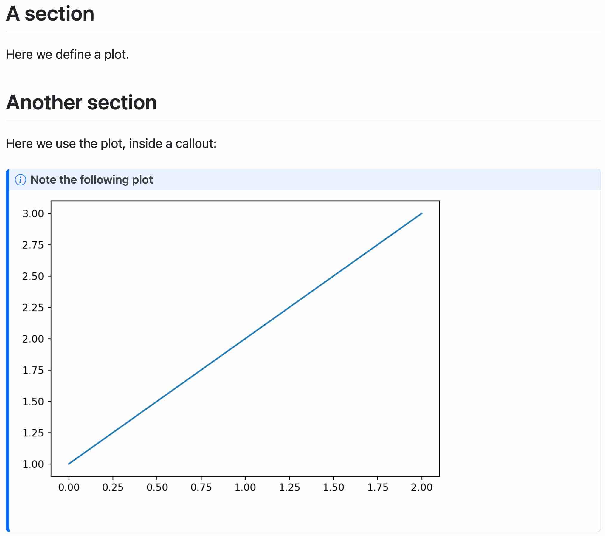 One particularly important reason is that Jupyter notebooks do not allow code cells to “nest” inside Markdown. Many of Quarto’s features are defined in terms of fenced divs, with Markdown that looks like this: