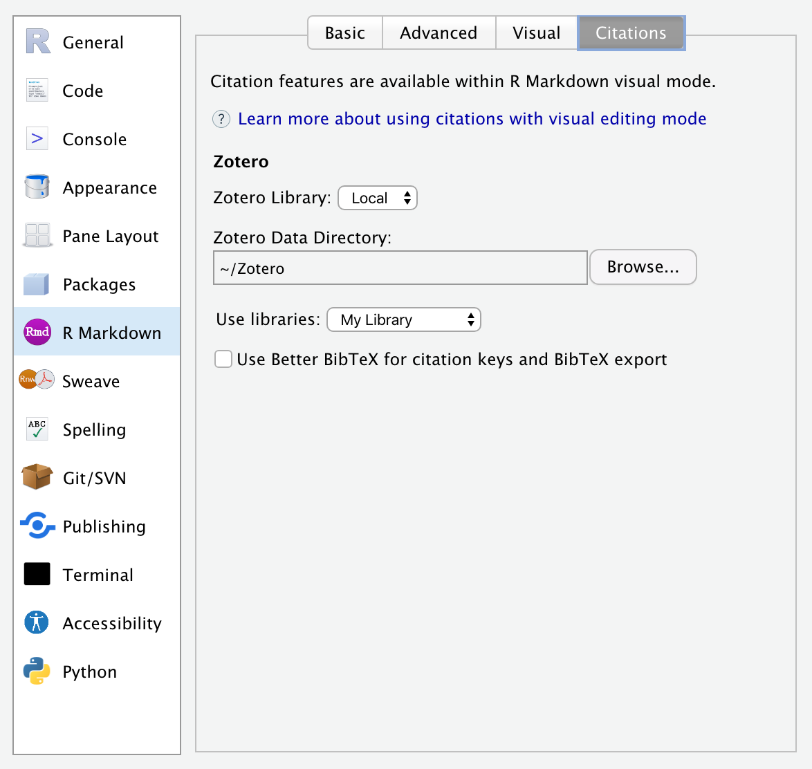 Use Better BibTeX for citation keys and BibTeX export. Optionally use Better BibTeX to generate citation keys and export BibTeX from Zotero (this option appears only if Better BibTeX is installed).